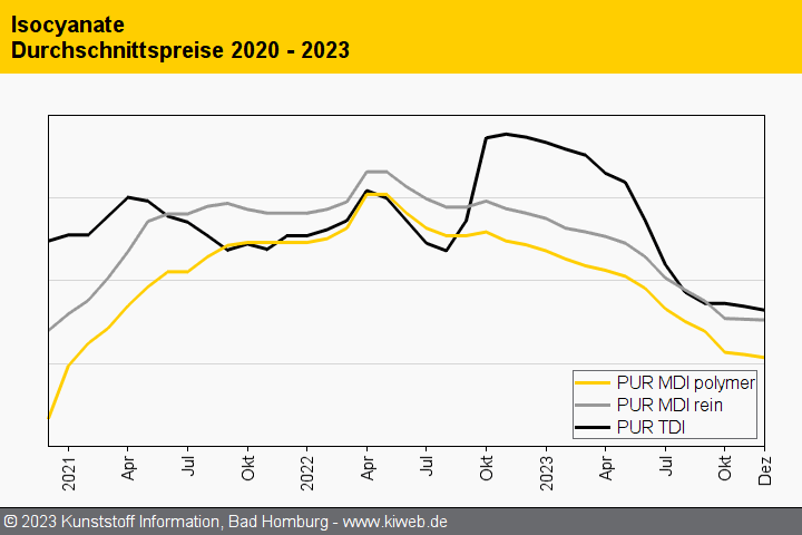 Die Preise für beide Isocyanate standen unter dem Eindruck einer schwachen Nachfrage, die sich zum Jahresende noch weiter abschwächte. Bei TDI kam mit mehr Importmenge und einer in der Folge eher liquiden Marktsituation ein zusätzlicher Abschlagsfaktor hinzu.