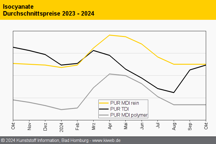 Obwohl bei MDI die Nachfrage schwach blieb, versuchten Erzeuger abermals, die Notierungen anzuheben – und scheiterten damit erneut. In den meisten Verhandlungen lief es auf ein Fortschreiben der Vormonatspreise hinaus. Anders bei TDI: Hier gelang es den Anbietern einen weiteren Monat in Folge, die Preise im Markt anzuheben. Begründet wurden die Aufschläge mit den Auswirkungen der Wartungen und einer vermeintlich lückenhaften Versorgungslage.