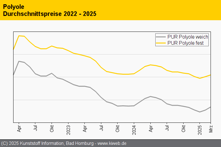Auch im April wollen Erzeuger mehr Geld für ihr Material erzielen. Da es aber kaum Aussichten für eine Steigerung der Nachfrage gibt, dürften die Preise nur in geringem Umfang steigen. Bei Polyolen öffneten die Force Majeure bei Shell, Lieferprobleme bei Repsol und Covestro sowie limitierte Importe den Weg für deutliche Preiserhöhungen. Dies berichtet der Branchendienst Kunststoff Information (KI, Bad Homburg) im aktuellen Online-Report.