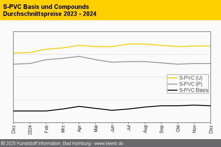 Der Rückgang des Ethylenkontrakts (-7,5 EUR/t) wurde bei den PVC-Notierungen im Dezember 2024 eingepreist. Auch wenn Anbieter zu Monatsbeginn den Rollover anboten, einigte man sich in den Verhandlungen schnell auf Abschläge. Die Versorgung blieb lückenlos.