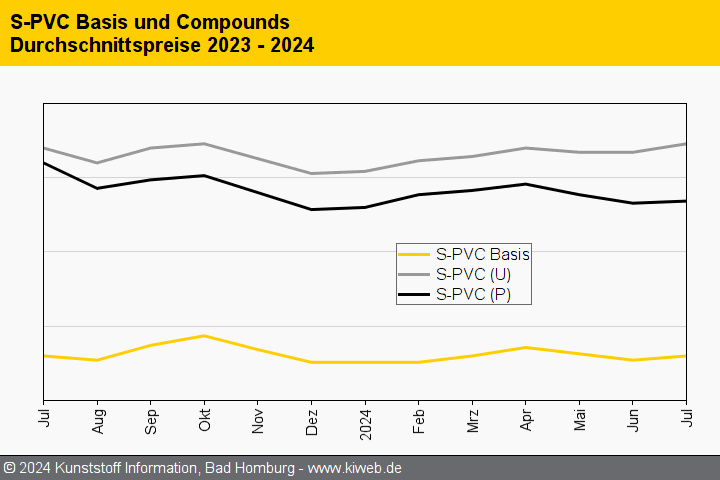 Obwohl der C2-Kontrakt im Rollover fixiert wurde und die Nachfrage nach wie vor verhalten war, zogen die PVC-Notierungen im Juli leicht an. Grund war das Inkrafttreten von Antidumpingzöllen auf S-PVC-Importe aus den USA und Ägypten. Erzeuger nutzten die Gunst der Stunde, dass weniger kostengünstiges Importmaterial im Angebot war.