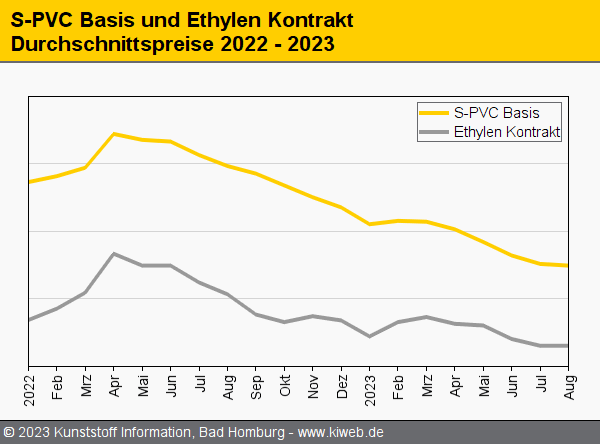 Die Notierungen für PVC gaben auch im August weiter nach, wenn auch nicht mehr so stark wie noch im Vormonat. Erwartungsgemäß wirkte sich die Ferienzeit dämpfend auf die Ordertätigkeit aus, sodass die ohnehin schon geringen Bedarfe nochmals zurück gingen. Obgleich Drosselungen und Wartungen der Anlagen den Ausstoß nach wie vor reduziert hielten, konnten Kontrakte zu jedem Zeitpunkt erfüllt werden. Dies berichtet der Branchendienst Kunststoff Information (KI, Bad Homburg; ) im aktuellen Online-Report.