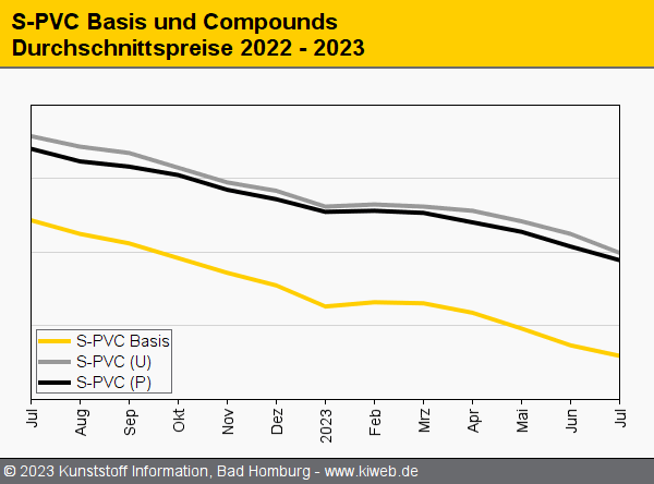 „Keine Änderung in Sicht“ – die seit Monaten gebeutelte Phrase gilt auch für den aktuellen Berichtsmonat: Die Notierungen für PVC setzten auch im Juli ihren Abwärtstrend fort. An der schwachen Nachfrage hat sich nichts geändert; die mit Abstand größte Abnehmerbranche „Bau“ ist spürbar ins Stocken geraten, sodass die Ordertätigkeit deutlich unter dem Normalniveau lag. Saisonale Impulse verstärkten diesen Trend noch, da sich immer mehr Verarbeiter in die Sommerferien verabschieden. Dies berichtet der Branchendienst Kunststoff Information (KI, Bad Homburg) im aktuellen Online-Report.