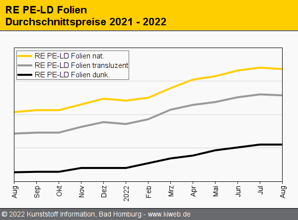 In den kommenden Wochen ist ein weiteres, dann breitflächiges Absacken der Notierungen zu erwarten. Sinkende Neuwarenpreise und die geringe Nachfrage üben spürbaren Druck auf die Rezyklate aus.
