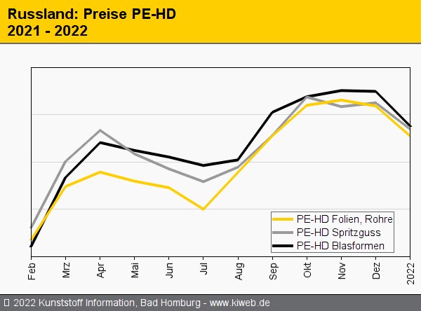 Die Gemengelage wird sich laut Kooperationspartner Plastinfo (Moskau / Russland) im Februar nur wenig ändern, weshalb weitere Preissenkungen erwartet werden. Vereinzelt hofft man auf eine Verbesserung der Nachfrage. Da der Rubel aber wohl weiter an Wert verliert, könnten einzelne Polyolefin-Erzeuger die Preise in der Landeswährung durchaus anheben, die Notierung in Euro wird dennoch abwärts tendieren oder stagnieren. Gleichzeitig ist seit Monatsende Januar ein leichter Anstieg der – logistisch immer noch sehr teuren – Importe zu beobachten.