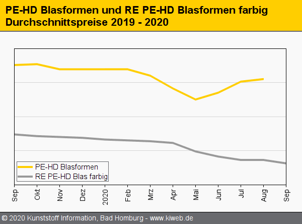 Die erhofften positiven Effekte durch Lagerauffüllungen nach der Urlaubszeit blieben aus. Daher mangelte es dem Markt für Standard-Regranulate im September 2020 am erforderlichen Rückenwind für geplante Preiserhöhungen, zumal auch die Neuware sich preislich kaum bewegte. Vor diesem Hintergrund wurde bei fast allen Sorten der Rollover vereinbart. Lediglich RE PE-HD Blasformqualitäten und RE PET Flakes bunt mussten dem bestehenden Überangebot Tribut zollen und leichte Abschläge hinnehmen. Dies berichtet der Branchendienst Kunststoff Information (KI, Bad Homburg) im aktuellen Online-Report.