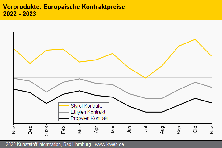 Insbesondere bei den Polyolefinen wird die Richtung von der Entwicklung bei den Monomeren vorgegeben. Die Abschlüsse tendieren jedoch stark uneinheitlich: Während bei PE-LD-Folien und auch PE-Rohrmaterialien die Monomer-Reduktion wegen des hartleibigen Verhandlungsgebarens der Erzeuger in den ersten Tagen des Monats noch nicht erreicht wurde, kam es bei PE-HD-Folien recht schnell sogar zu dreistelligen Preisrücknahmen. Insgesamt aber dürfte es bei der Mehrzahl der berichteten Typen im weiteren Monatsverlauf noch zu Verschiebungen zugunsten der Verarbeiter kommen. Abwarten könnte sich also lohnen.