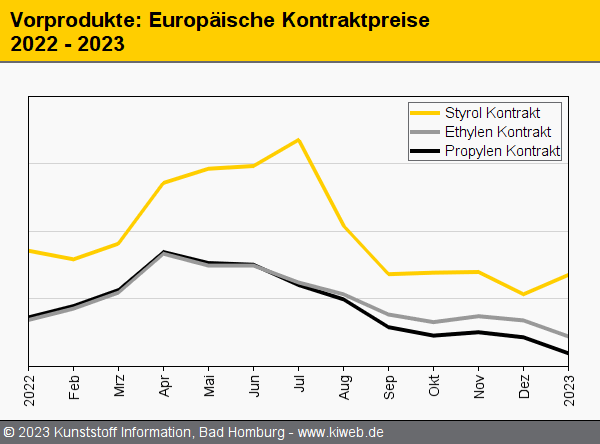 Die Preise folgen der Marschrichtung, die die Veränderungen der Monomerkosten (C2 und C3 jeweils -95 EUR/t, SM +115 EUR/t) vorgegeben haben. Bei den Polyolefinen sind aktuell noch Preissenkungen unterhalb der C2- und C3-Vergünstigungen im Gespräch, doch Verarbeiter drängen vehement auf höhere Abschläge. Gestützt wird ihr Ansinnen durch die anhaltend schwache Nachfrage und zuletzt rückläufige Energiekosten. Ähnlich verhält sich die Sachlage bei PVC. Derweil drehen die Notierungen der Styrolkunststoffe nach oben, nachdem die Styrol-Referenz im Januar um 115 EUR/t nach oben ging. Dies berichtet der Branchendienst Kunststoff Information (KI, Bad Homburg) im aktuellen Online-Report.