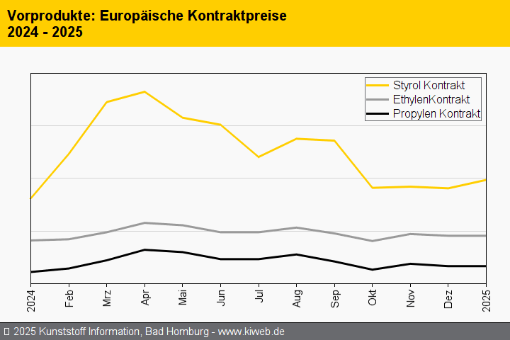 Bei den Preisen für Standard-Thermoplaste tat sich auch nicht sonderlich viel. Viele Verhandlungen sind zwar noch nicht abgeschlossen, da die meisten Verarbeiter in der zweiten Januarwoche erst den Betrieb wieder aufnehmen. Aber bei den Polyolefinen und bei PVC zeichnet sich bereits jetzt weitgehende Preisstabilität ab, zumal auch die Referenzkontrakte für Ethylen und Propylen den Rollover verzeichneten. Vergleichsweise moderat blieben auch die Aufschläge der nicht selten volatilen Notierungen der Styrolkunststoffe, deren Preisveränderungen sich ebenfalls an der Entwicklung der Vorproduktkosten (SM: +36 EUR/t) orientierten.