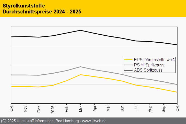 Der Trend hält an: Im Oktober 2025 haben die Preise für Styrolkunststoffe bereits den siebten Monat in Folge nachgegeben. Stete Rückgänge der Styrol-Kontraktreferenz und die dauerhaft schwache Nachfrage bereiteten den Weg nach unten.