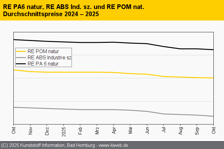 Eine deutlich frühere Drosselung der Produktion als üblich zum Jahresende scheint ausgemachte Sache zu sein. Bereits gegen Mitte November könnte es bei den Recyclingunternehmen hierzu kommen. Deshalb dürften die Preise weiter nachgeben. Die Orderbücher der Verarbeiter bieten weiterhin Platz für neue Aufträge. Dies berichtet der Branchendienst Kunststoff Information (KI, Bad Homburg) im aktuellen Online-Report.